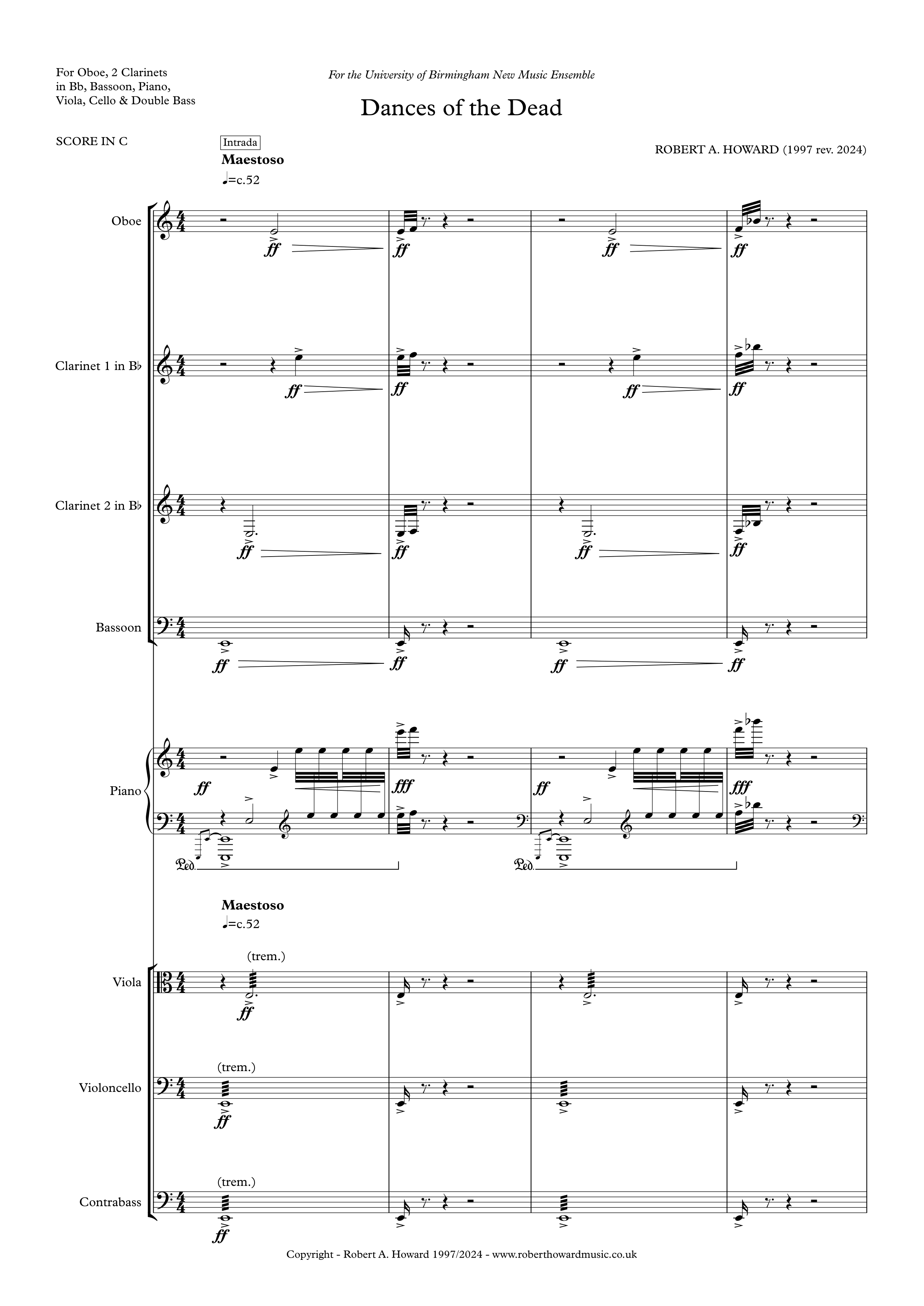 Dances of the Dead (for oboe, 2 clarinets in Bb, bassoon, piano, viola, cello & double bass, 1997, rev. 2024)