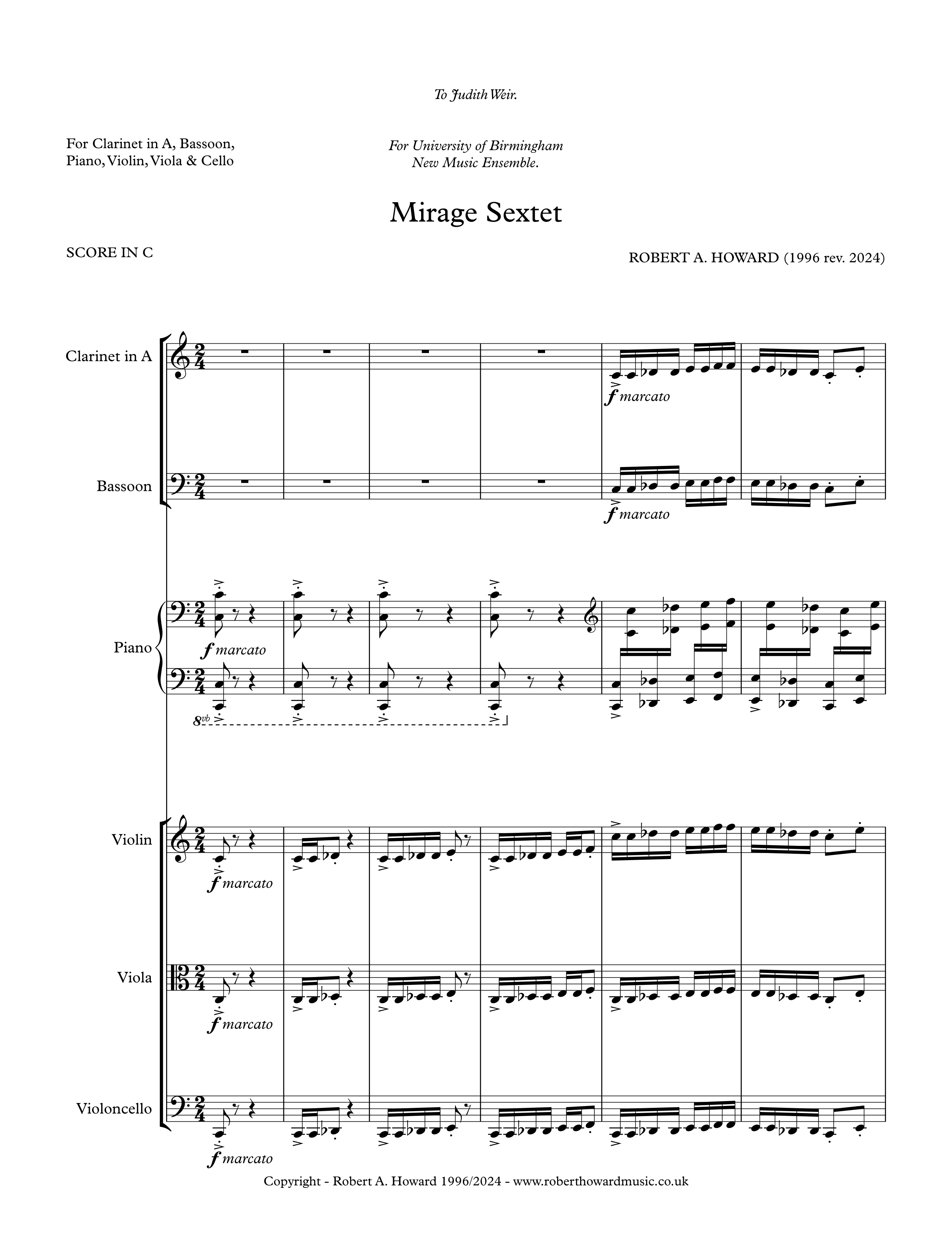 Mirage Sextet (for clarinet in A, bassoon, piano, violin, viola & cello, 1996)